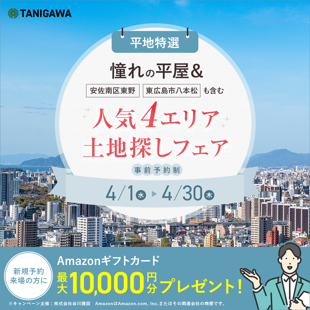 【広島】平地特選!憧れの「こころの平屋」&「上安の建売」を巡る。東野・東広島市八本松も!人気4エリア土地探しフェア NEW