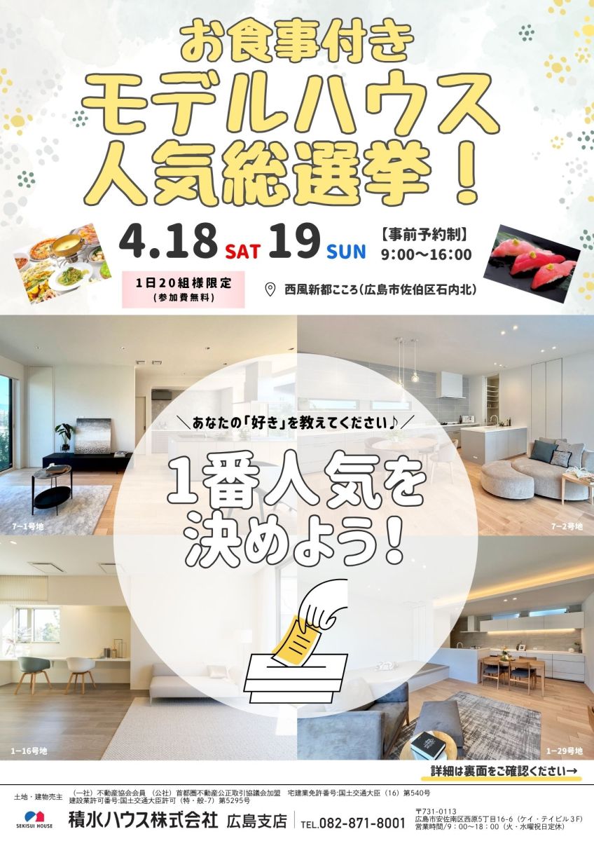 無料お食事付き!!モデルハウス人気投票♪