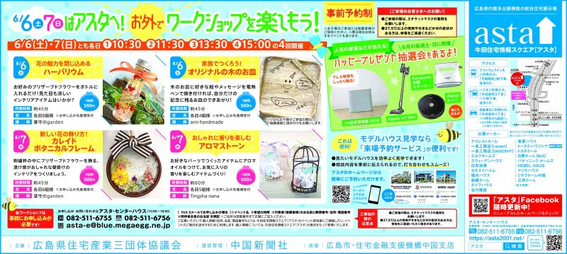 〈ワークショップは事前にお申し込みが必要です〉 下記の方法でアスタ・センターハウスにお申し込みください。