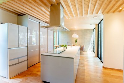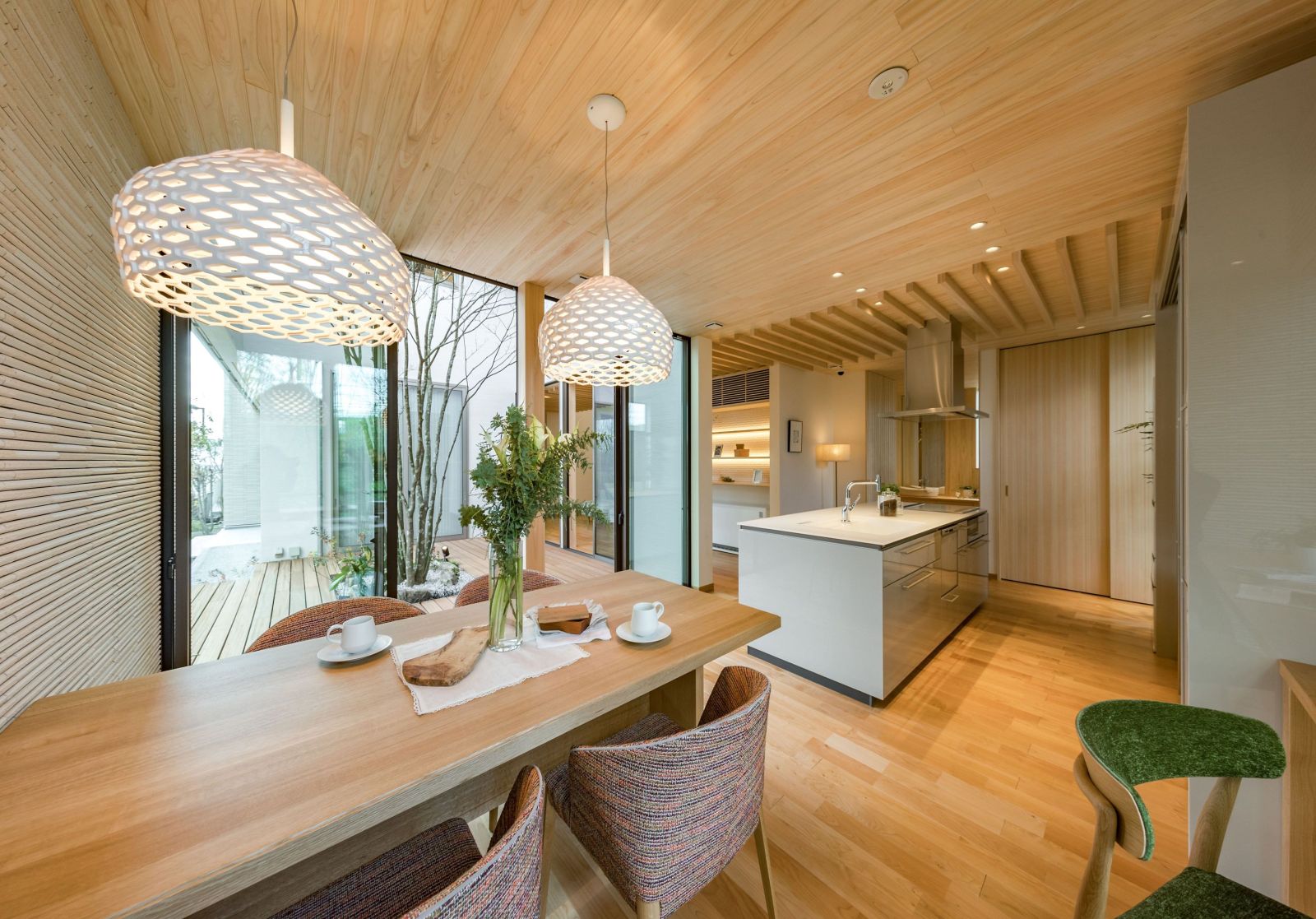 自然との繋がりが暮らしに心地良く活きる、開放的な木曽檜の住まい。 匠の技で用いる美しく機能的な無垢材、やさしくも力強い木曽檜などの賛沢な自然素材が安らぎの空間を作り上けています。